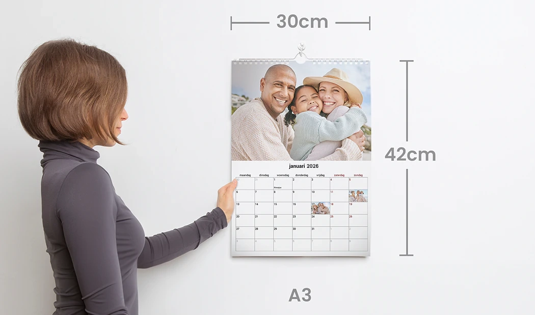 Onze A3-kalender is ideaal om je favoriete foto's te laten zien, met ook voldoende ruimte voor aantekeningen.