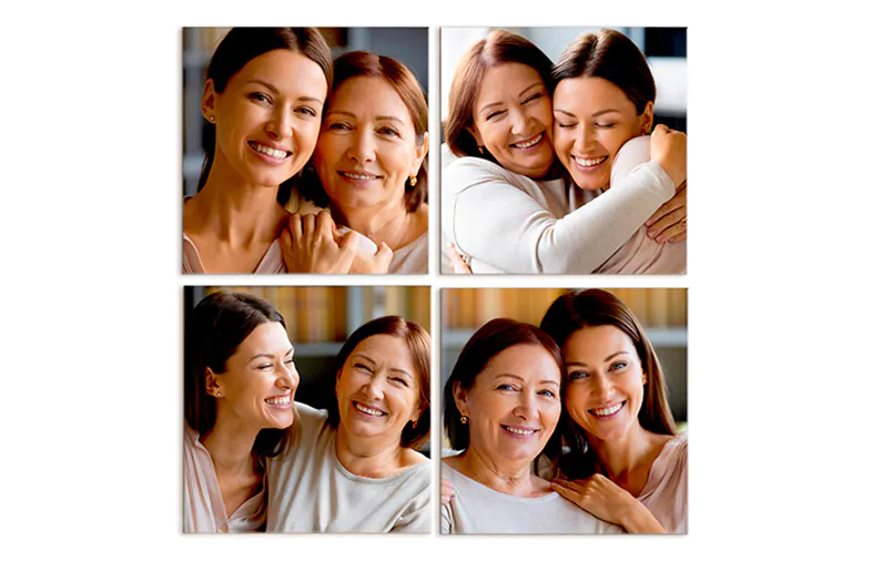 Een tijdloze klassieker — rangschik je 4 fototegels in een netjes raster of freestyle.