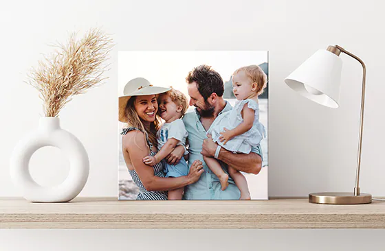 Geen gedoe meer met haken of ophangen. Onze lichte, gepersonaliseerde fototegels zijn perfect om te plakken, te wisselen en op afstand te houden, zodat je een unieke presentatie voor mama kunt maken die perfect in haar ruimte past.