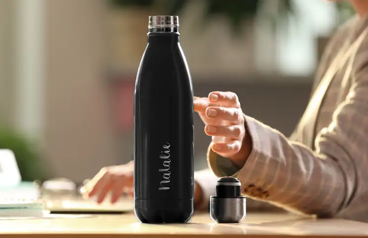 Maak een gepersonaliseerde waterfles met jouw tekst gegraveerd. Geef je herbruikbare waterfles een persoonlijk tintje met lasergravure en een keuze uit kleuren. Voeg je naam, bijnaam of een korte slogan toe om je waterfles te personaliseren.