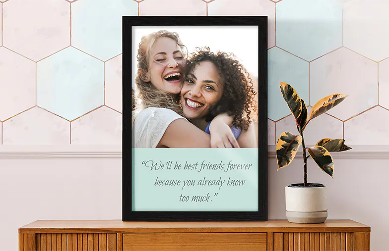 Personaliseer elk detail van je ingelijste fotoprint. Experimenteer met formaten, lay-outs en ontwerpen — en voeg zelfs tekst en illustraties toe.