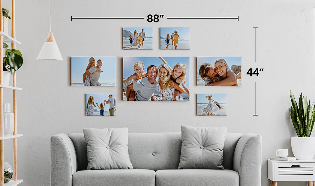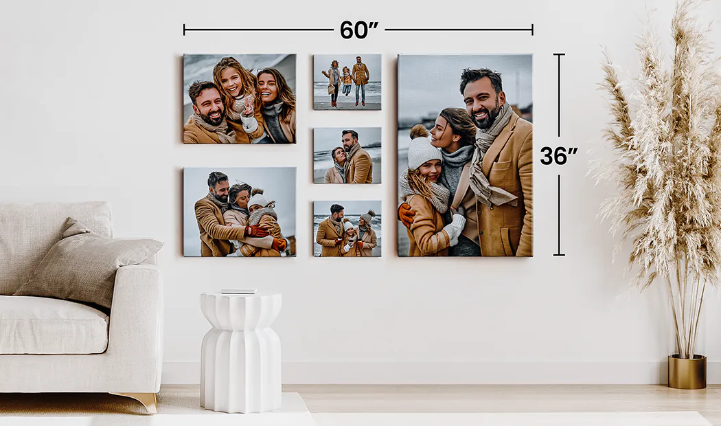 Een galerijmuur creëren met canvas prints is een kunstvorm waarmee je je unieke stijl en persoonlijkheid kunt uitdrukken, terwijl je je ruimte transformeert in een verbluffende tentoonstelling van kunstwerken. Of je nu een woonkamer, slaapkamer, gang, of kantoor decoreert, een goed samengestelde galerijmuur kan de sfeer van elke kamer direct verhogen. We bieden je tips en inspiratie voor het maken van een galerijmuur met foto canvas prints die een blijvende indruk zullen achterlaten. Creëer je eigen canvas vanaf elk apparaat — mobiel, desktop, computer of laptop!
