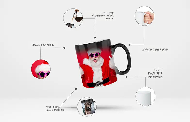 Schenk een warme drank in en zie hoe je foto magisch verschijnt op deze hittegevoelige mok. Alleen met de hand afwassen.