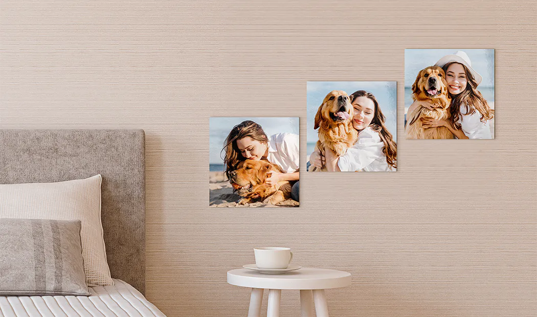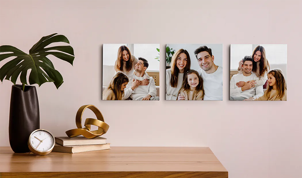 Een klantfavoriet — print 3 foto's op metaal met slechts een paar klikken. Kies uit opties voor direct ophangen of (staand).